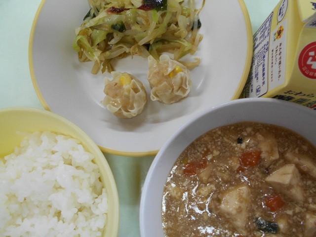 ごはん 牛乳 コーンシューマイ 海藻サラダ マーボー豆腐