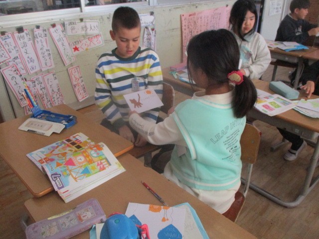 12月2日(火) 3年生 外国語活動「This is for you.」(カードを送ろう)