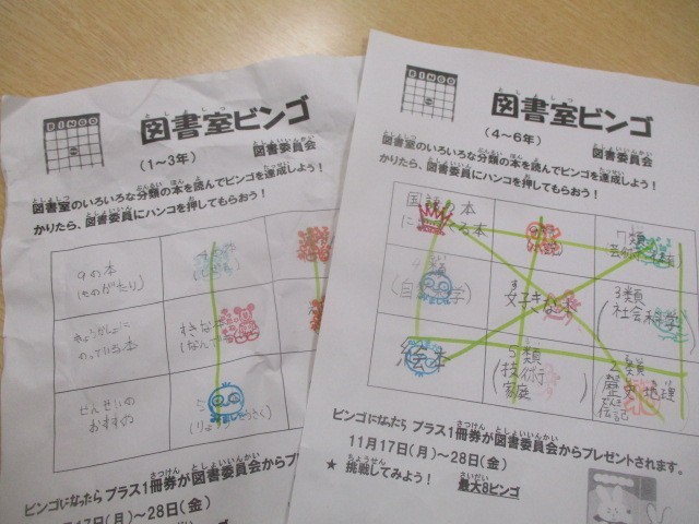 図書委員会が企画した図書ビンゴを、11月17日(月)~28日(金)まで行いました。