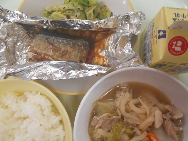 ごはん 牛乳 さばの銀紙焼き ゆかり和え はくさいなべ