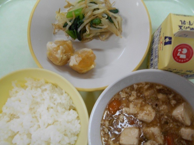 ごはん  牛乳  にんじんシューマイ  塩ナムル  マーボー豆腐