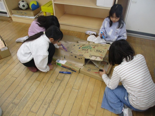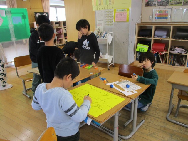生活科では、動くおもちゃを使って遊ぶ「おもちゃパーク」を計画しています。みんなに楽しんでもらおうと、熱心に取り組んでいます。