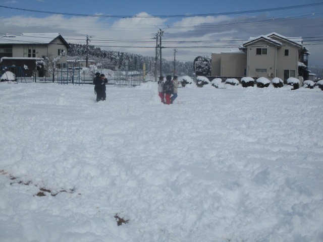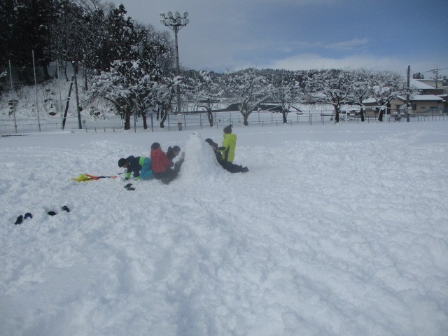 待ちに待った積雪です。3年生は、元気よく雪遊びをしました。かまくらやスフィンクス、雪だるまを作ったり、雪合戦をしたりして、仲よく遊びました。