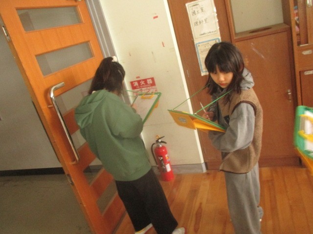 社会科の学習で、学校の中にある消火器や消火栓を探しました。普段、何気なく過ごしている学校の中には、予想以上にたくさんの消火器や消火栓がありました。たくさんあることに、子どもたちはとてもびっくりしていました。