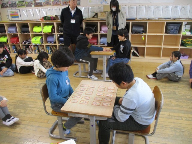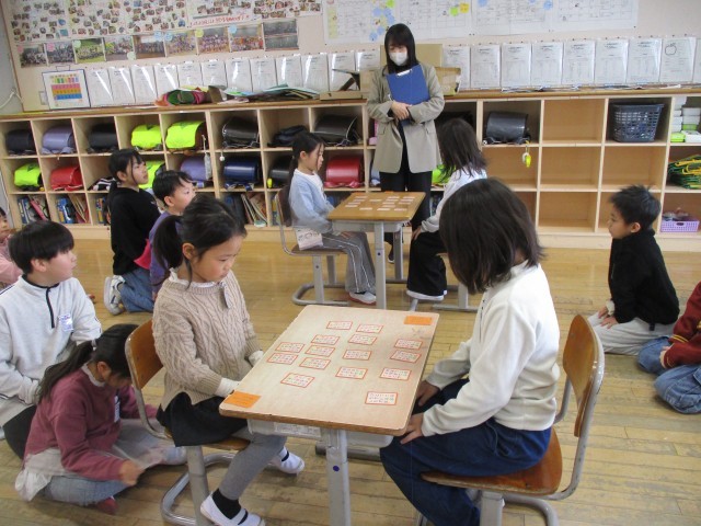 ドキドキしながら迎えた百人一首大会。みんな真剣に札を探していました。上の句を聞いただけで札をとり、一生懸命に歌を覚えてきた成果を発揮している子もいました。