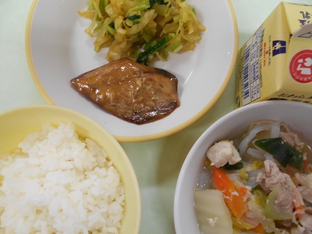 ごはん 牛乳 さばのみそ煮 おひたし 塩こうじ鍋