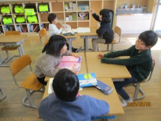 国語科の学習で、自分の好きな本について紹介し合いました。身を乗り出して聞いたり、もっと詳しく聞きたいことを質問したりしていました。