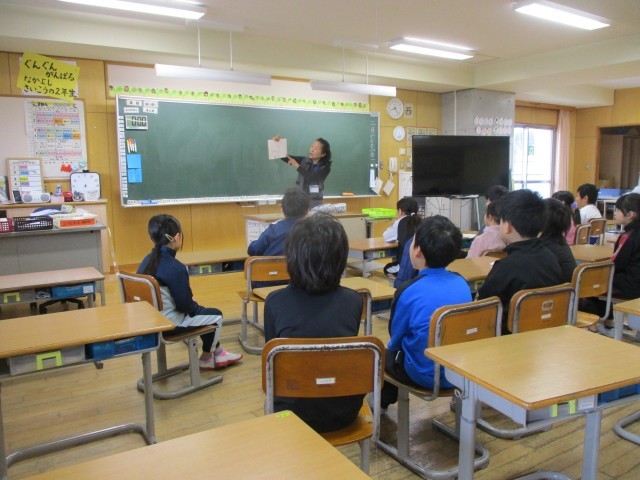 2年生で最後の読み聞かせでした。今日の本は、悲しい中にも主人公の心の成長が感じられるお話でした。子どもたちは真剣な顔で聞き入っていました。