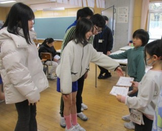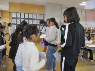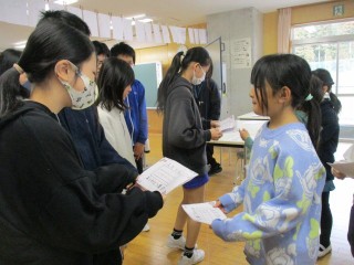6年生に、卒業を祝う会「スマイルありがとう集会」の招待状を渡しました。5年生が考えてつくった招待状に心を込めて色を塗ったり、絵を描いたりしました。緊張していた子どもたちでしたが、6年生が優しく受け取ってくれたので、嬉しそうでした。