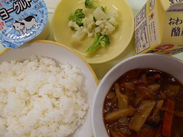 ごはん 牛乳 たべキリンハヤシ 花野菜サラダ ヨーグルト