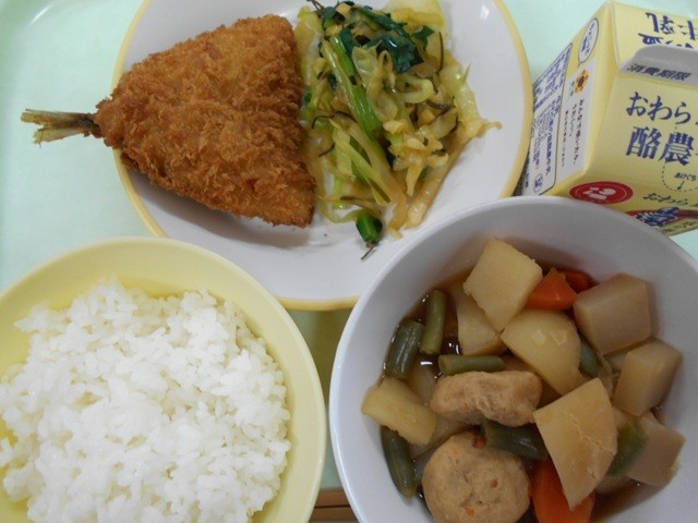ごはん 牛乳 あじフライ 昆布和え 関東だき