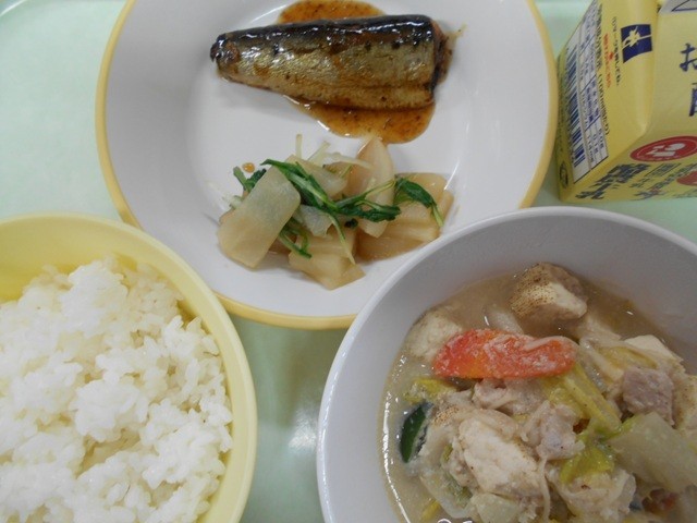 ごはん  牛乳  いわしの土佐煮  甘酢和え  ごま豆乳鍋