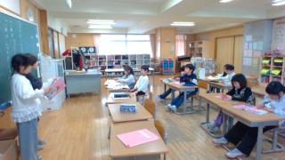 国語科では、クイズを作って話したり、聞いたりする学習をしています。真剣にヒントを聞きながら、答えは何かを考えていました。
