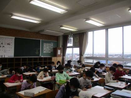 今日は、算数科・社会科の学力調査を行いました。真剣に取り組むことができていました。