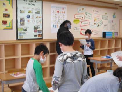 5年生になって外国語が教科となりました。今日は、「What sport do you like?」の表現を使って、友達と好きなスポーツや色、食べ物を聞いたり答えたりしました。ALTに積極的に質問をする子供達いました。いろいろな人との関わりを通して、外国語の表現を覚えることができました。