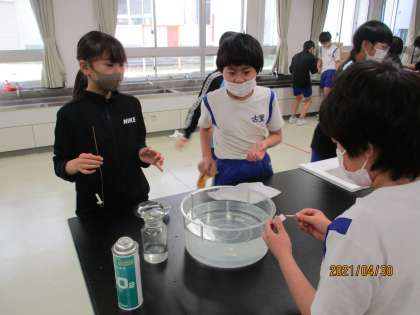 今日の理科では、ものを燃やすために必要な気体について調べました。安全に気を付けながら正しい実験結果を調べることができました。