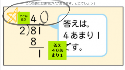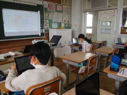 今日の算数科の学習では、割り算の筆算のまちがいをもとに学習しました。クロームブックでジャムボードを使い、間違えていると思うところに印や付箋を付けるなどして、友達と考えを共有しました。アプリケーションの便利さを感じながら、学習を進めていました。