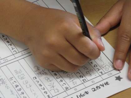 学習した漢字を身につけるために、ミニ漢字テストを行っています。1日5問ずつ家庭学習で練習して覚え、翌日にミニテストを行います。集中して練習すれば、100点が取れるので、自分もできると自信につながっています。