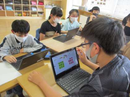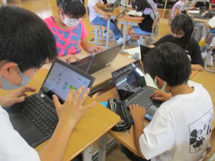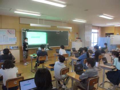 宿泊学習に向けて、みんなが気持ちよく過ごすために気を付けたいことについて、係ごとに話し合いました。クロームブックを活用して、係でまとめたことをみんなで共有しました。
