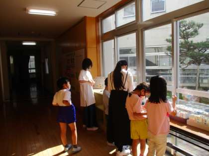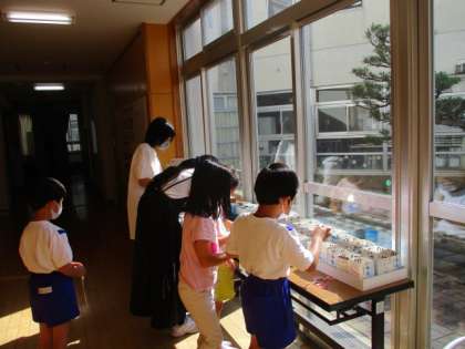 環境委員会から全校でベルマークを集めようという呼びかけがありました。今月持ってくることができた子供たちが、環境委員の6年生に教えてもらいながら、ベルマークの仕分けを行いました。「集めてくれてありがとう」のシールを袋に貼ってもらって、これからもたくさん集めたいと張り切る1年生でした。