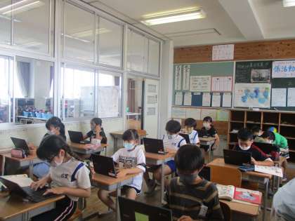 今日はクロームブックを使って、課題の提出を行いました。これまでに習った漢字を使って、夏の楽しみを文章に書き記しました。