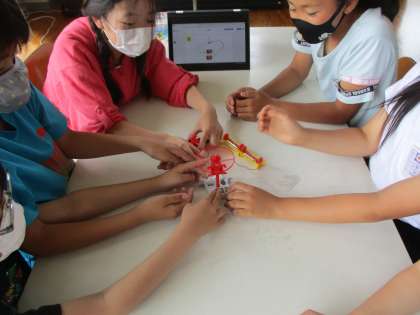 今日の理科では、モーターをもっと速く回すにはどのような繋ぎ方がよいかを考える授業を行いました。ジャムボードで予想を立て、実際に試すことが出来ました。グループでの話合いも活発に行われていました。