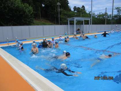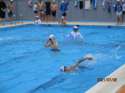 今日の4時間目に今年度初のプール学習をしました。2年ぶりに学校のプールに入るということで、とても楽しみにしている子供がたくさんいました。いろんな泳ぎ方をしながら流れるプールを作ったり、25mを自分のペースで泳いでみたりしました。