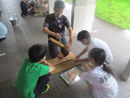 今日は、社会科の学習の一環として、校外学習に行きました。写真は、富山県文化財センターでの写真です。富山県で出土されたものを解説していただいたり、火起こし体験をしたりしました。