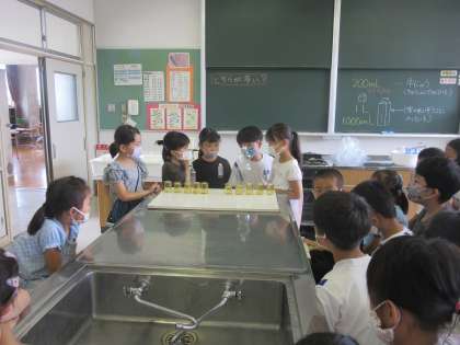 「大きさ・形が違う入れ物に入っている水のかさは、どっちが多い?」