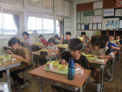 今日の給食の様子です。みんな大好きなカレーだったので、いつもより早く食べ終わる子供がたくさんいました。ご飯粒1つ残さず、きれいに食べることができました!