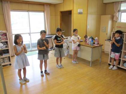 暑い日が続きますが、子供たちは元気いっぱいに過ごしています。休み時間には、各々好きなことに取り組んでいます。教室で読書やリコーダーの演奏をしたり、体育館へ行ってドッジボールやバスケットボールをしたりしています。体育館で遊んでいた子供たちは、「あっつい〜」と言いながらも笑顔で教室へ戻ってきました。