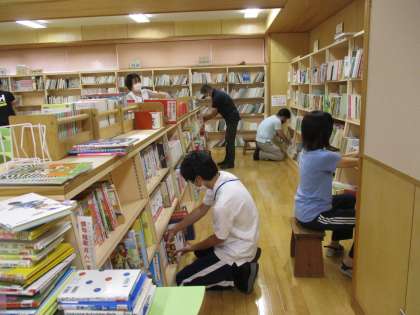 今日は、蔵書点検が終わった図書室の本を先生たちで整えました。