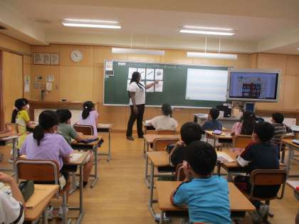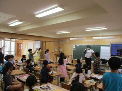 今日の外国語活動では、文房具の名前や「Yes,I do.」「No,I don't.」の言い方を学習しました。英語を使ってじゃんけんをしたり、「I spy」というゲームをしたりして、楽しく活動することができました。