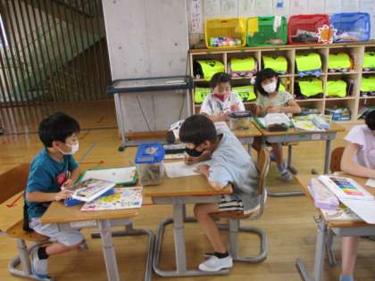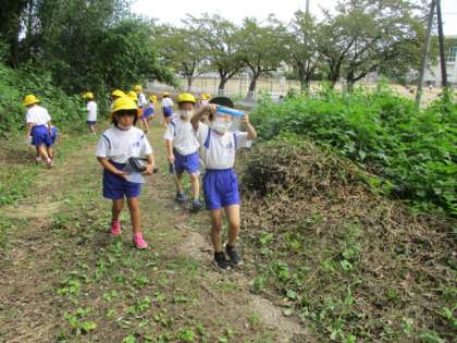 秋の虫を探しに行きました。学校の周りの草むらや木の下などで、カマキリやバッタ、コオロギ等の秋の虫を捕まえることができました。しばらくの間、観察したり世話をしたりします。子供たちは、休み時間ごとに虫かごを覗き、つかまえた虫をかわいがっています。
