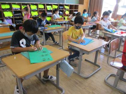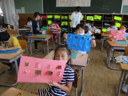 始めは緊張していた子供たちですが、カッターナイフの使い方にも少しずつ慣れ、たくさんの窓を作ることができました。