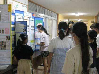 発表を校内テレビ放送で見聞きした子供たちは、さっそく児童玄関前に展示してある作品を見に来て「すごいね!」「私には、できない・・・」などと、驚きの声をあげていました。