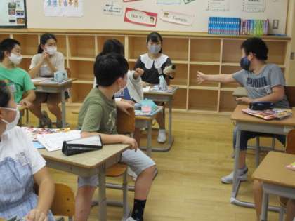 今日からは、道案内について学習を始めました。「右へ曲がる」「左や曲がる」「真っ直ぐ進む」など、ゲームを通して学びました。