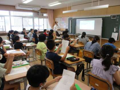 5年生では、総合的な学習の時間に米作りについて学習しています。田植えは体験させていただきましたが、稲刈りはコロナの影響で中止となりました。そこで、地域で農業に携わっておられる方に米作りに対する思いを聞かせてもらいました。おいしいお米を食べてもらいたい、農業をつないでいきたいなど、熱心に語っていただきました。