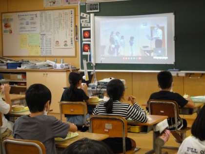 各教室では、その様子を給食を食べながら静かに見たり、拍手したりしていました。