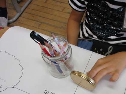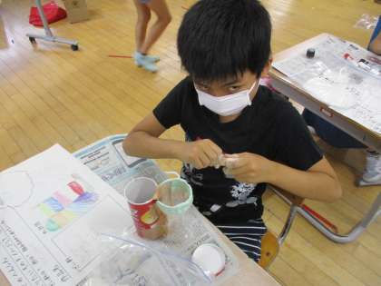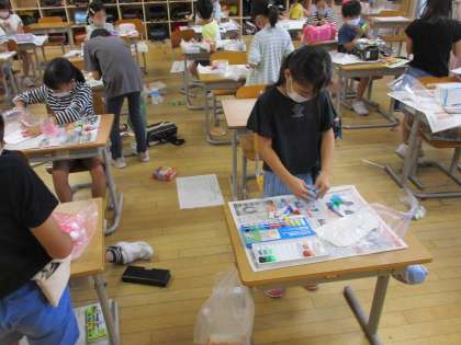 図工では、「空きようきのへんしん」という学習が始まりました。身の回りにある空き容器を、切ったり組み合わせたりした後、紙粘土で周りを覆い、小物入れを作ります。今日は、設計図をかくところからスタートしました。自分の使いたい容器の形を捉えて、作りたいものをイメージしました。設計図をかき終えた子から、制作に取りかかりました。どんな小物入れができるのか、楽しみです。