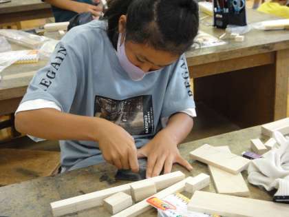 今日の図画工作科の学習では、のこぎりを使って角材を切りました。安全に気を付け、集中して取り組んだため、怪我無く終えることができました。切った角材を紙やすりで磨き、角をなくす作業も行いました。今後は、色を付けてそれぞれを組み合わせ、自分の作りたい物を作成していきます。どんな作品が仕上がるか非常に楽しみです。