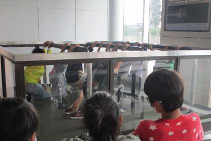 四季防災館での校外学習の様子です。防災シアターや地震体験、煙体験を通して、様々な自然災害について考えました。これまでの学びと結び付けながら学習する、よい機会となりました。