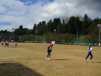 体育科の学習では、毎時間5分間走を行っています。自分に合ったペースを見付け、走り切ることができるように声を掛けています。気温が下がり、体調を崩しやすい時期ですが、病気に負けない健康な身体づくりを心がけていきます。