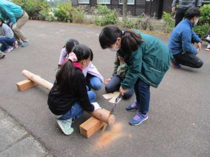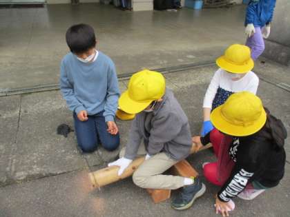 午後は、コースターを作りました。4・5年生が協力して木を切りまし表面を磨いた後表面を磨いた後、焼き印を押しました。完成した作品は、明日みんなで鑑賞します。