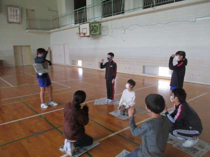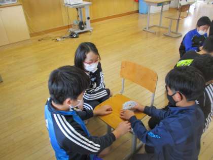 国語科の学習では、「集会でスマイル班で楽しめる遊び」について色団ごとに話し合っています。話し合いで決定した仮の案を実際にやってみました。自分たちでやってみることで、新たな課題が見つけることができたようです。