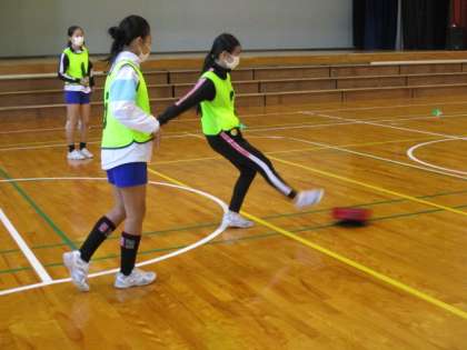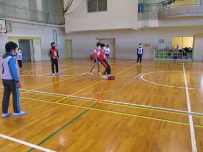 体育科では、「ハイパーキックホッケー」に取り組んでいます。大きなパックを蹴って、得点を増やすゲームです。ゲームをしながらルールについて話し合い、さらに楽しくなるよう工夫していきます。今日は、始めたばかりで、うまく蹴れなかったり、メンバーとの息が合わなかったりしましたが、勝利を目指してこれから作戦を立てていきます。