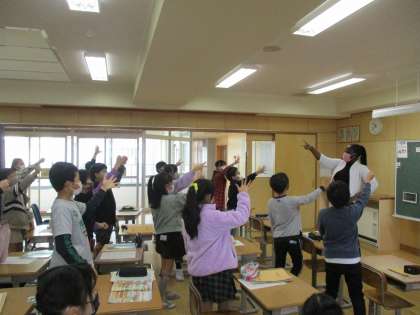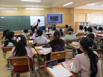 今日は外国語活動で「What do you want?」の学習を行いました。野菜やフルーツの英語の言い方を楽しく学習しました。映像を見て、「What does she want?」という質問に答えるなど、何を聞かれているか、どう答えるかをしっかり考えることができるようになってきました。