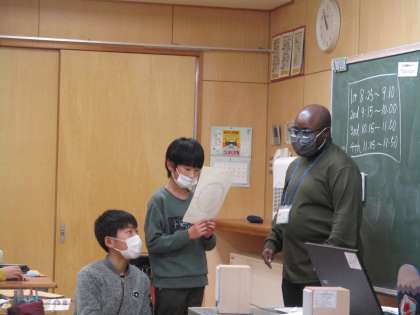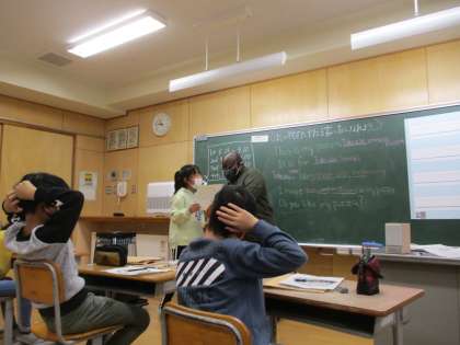 今日も楽しく外国語活動の学習を行いました。ダニエル先生のオリジナルチャンツを歌ったり、ピザの紹介をしたりするなど、楽しんで外国語に親しんでいます。