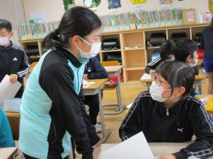 学級集会の振り返りをしました。準備のときからチームで協力できた、自分の意見を言うことができた、「ナイス」「ドンマイ」を言うことができたなど、自分で立てた目当てを意識して参加し、達成できたことを認め合いました。努力していた友達を見付け、その人のがんばりを伝え合いました。