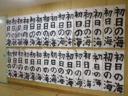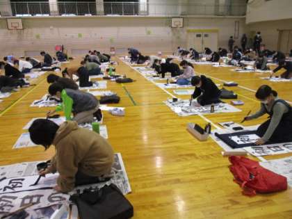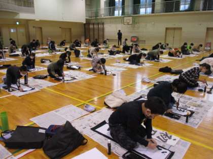 始業式の後、書初大会を行いました。一画一画丁寧に書きました。冬休みの練習の成果を発揮していました。